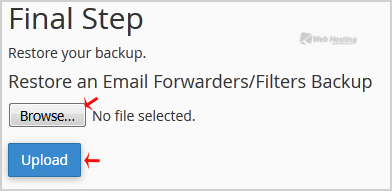 5. Click on "Browse", select your backup file from your PC, and click on the "Upload" button.