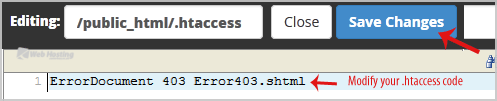 7. Make changes to your .htaccess file and then click on the "Save Changes" button.