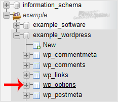 3. In left side-bar, Click on the expand button to expand database like "example".