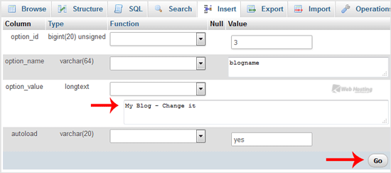 7. Edit "My Blog" to different text and then click on "Go" button.
