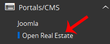 4. On the left side of your screen you should locate the "Portal/CMS" category. Click on it and then click on the "Open Real Estate" link that will appear.
