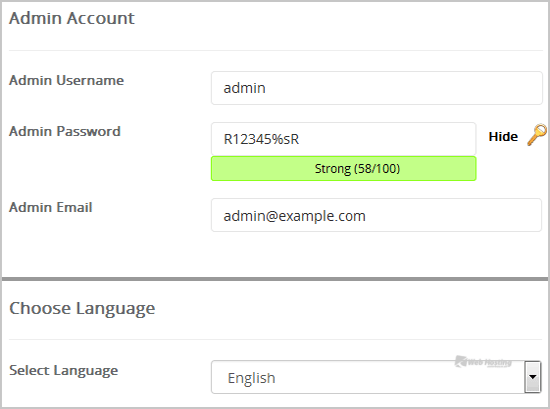 • Admin Username: Your new Concrete5 username (for security reason do not use the "Administrator" or the "Admin" username.)