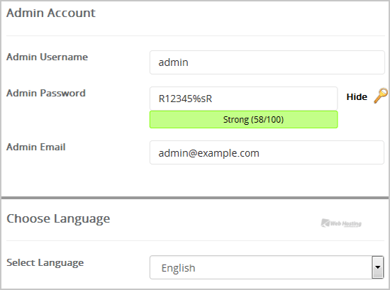 - Admin Username: Your new Website Baker username (for security reason do not use the "Administrator" or the "Admin" username.)
