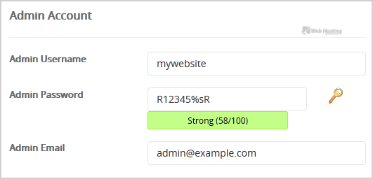 - Admin Username: Your new PopojiCMS username (for security reason do not use the "Administrator" or the "Admin" username.)