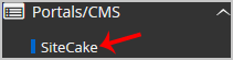 4. On the left side of your screen you should locate the "Portal/CMS" category. Click on it and then click on the "SiteCake" link that will appear.